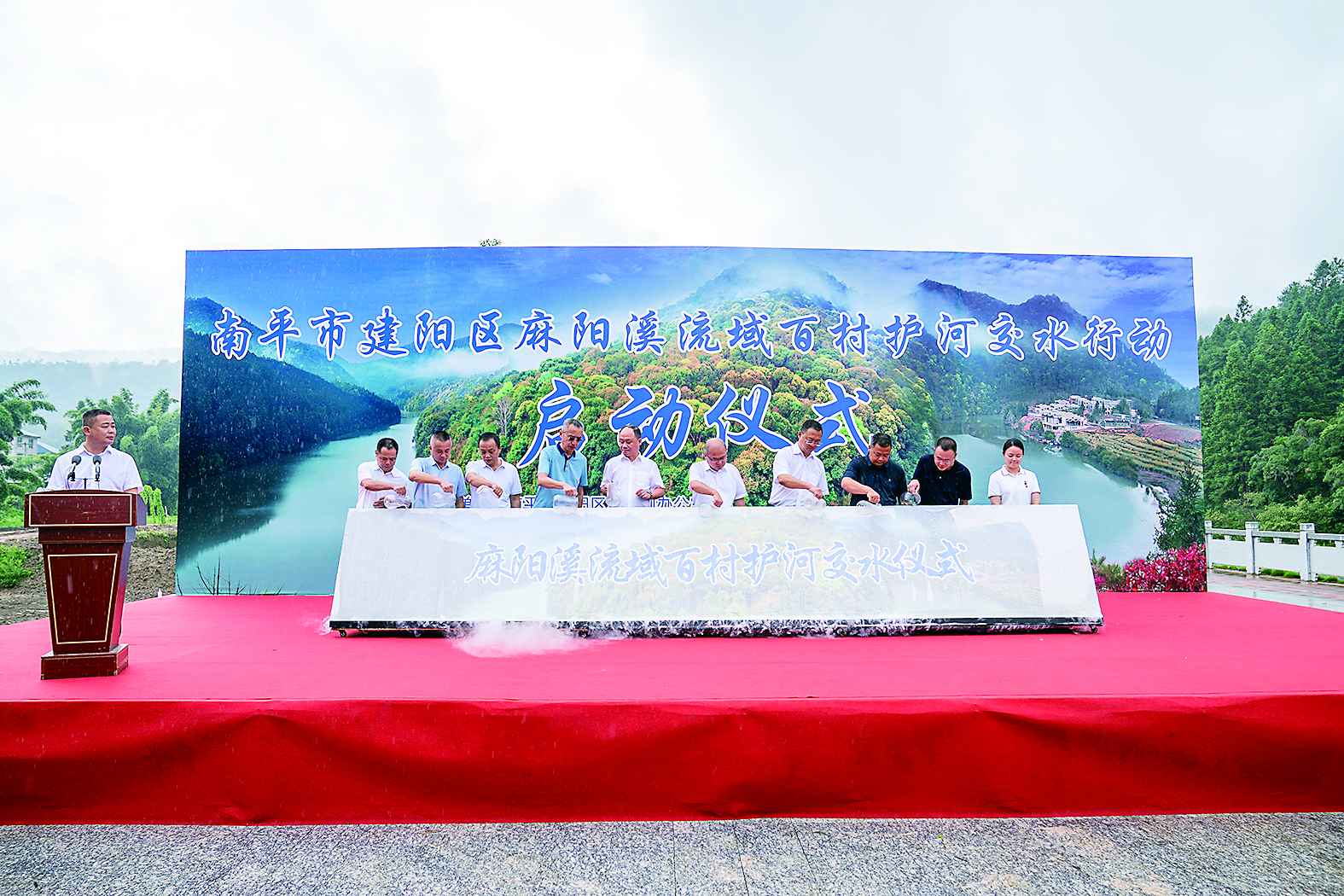 2023年8月22號,建陽區(qū)舉行麻陽溪流域百村護河交水聯(lián)合行動啟動儀式,率先開展村與村之間巡河交水。