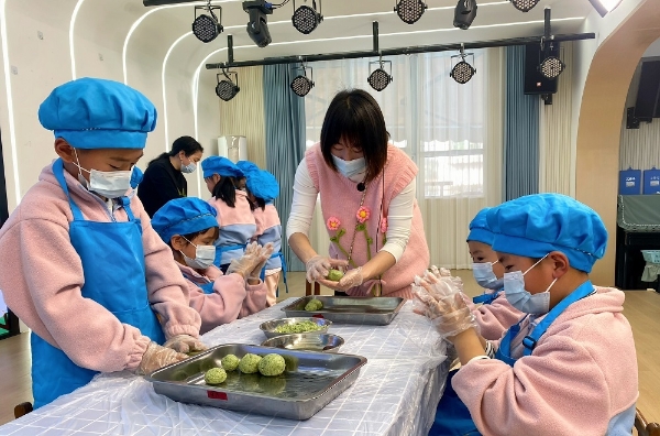 孩子們體驗包青團(tuán)(王曉云 攝)