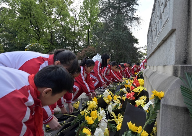 4月1日,南平市、建陽區(qū)兩級文明辦、退役軍人事務(wù)局、團(tuán)委在建陽區(qū)登高山烈士陵園聯(lián)合開展“賡續(xù)·2025·百園千校清明祭英烈”活動。市區(qū)兩級有關(guān)單位干部職工、建陽區(qū)西門小學(xué)學(xué)生及老戰(zhàn)士、烈屬代表近300人參加。圖為學(xué)生們向烈士紀(jì)念碑敬獻(xiàn)鮮花。 (羅光耀 陳燕 攝)