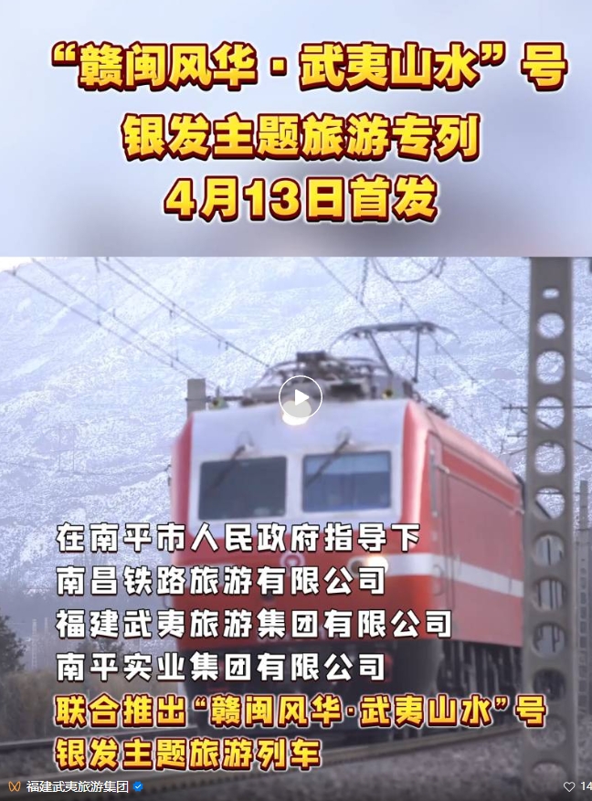 為加快構(gòu)建“大武夷文化旅游圈”,武夷旅游集團(tuán)、實(shí)業(yè)集團(tuán)聯(lián)合南昌鐵路旅游有限公司推出“贛閩風(fēng)華·武夷山水”號(hào)銀發(fā)主題旅游列車,將于4月13日首發(fā)。