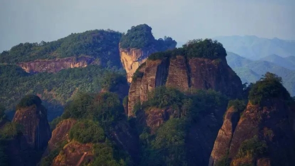 “兩位老師請(qǐng)看,這就是丹霞地貌。這里聳立的巖石從地質(zhì)史學(xué)角度看,都是在喜馬拉雅山造山運(yùn)動(dòng)時(shí)期天然而成的,姿態(tài)各異、鬼斧神工?!痹谖湟纳斤L(fēng)景區(qū)工作多年的范傳忠老師是我們此行的向?qū)?。他帶著我們從天游峰景區(qū)入口處右側(cè)小道蜿蜒而入,沿著20世紀(jì)90年代負(fù)責(zé)武夷山“世遺”評(píng)審工作的外國專家的考察路線一路穿行。
