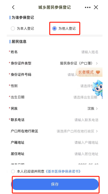2.選擇“為他人登記”,按要求仔細(xì)填寫相關(guān)信息,確認(rèn)無誤后點(diǎn)擊【保存】。
