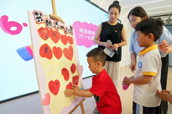 游戲環(huán)節(jié)將活動推向高潮。粽子接力賽中,孩子們與老師配合默契;彩虹傘拋粽子游戲更是笑聲不斷。活動還特別設(shè)置了心愿墻,孩子們用稚嫩的筆觸畫出自己的“六一”心愿,把自己的純真心愿表達在紙上。活動最后,老師們?yōu)槊课缓⒆铀蜕狭司臏?zhǔn)備的學(xué)習(xí)用品禮包。