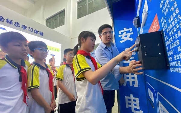 “大家要注意,這里體驗(yàn)的最高電流不過10毫安,而人的身體通過50毫安以上的電流就可能會有死亡風(fēng)險……”在安全技能實(shí)訓(xùn)中心,講解員詳細(xì)地為孩子們講解電力知識,引導(dǎo)孩子們辨識了常見安全標(biāo)志,體驗(yàn)了“觸電”、模擬用電著火等安全風(fēng)險項(xiàng)目,還就日常生活中的用電常識進(jìn)行了學(xué)習(xí)。