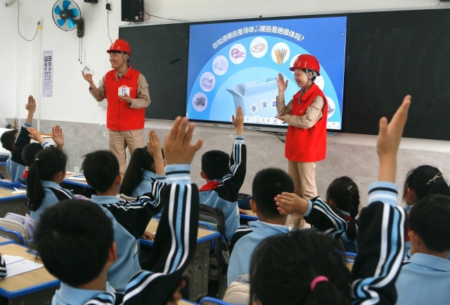在學(xué)校三年級(jí)教室,“安全用電知識(shí)小課堂”環(huán)節(jié),該公司青年志愿者借助精心制作的PPT,從家庭常見的用電隱患到正確使用用電設(shè)備、及時(shí)關(guān)閉電器電源等進(jìn)行細(xì)致講解;在場(chǎng)景展示環(huán)節(jié),模擬家庭用電場(chǎng)景,引導(dǎo)同學(xué)們找出其中存在的安全隱患;在調(diào)研環(huán)節(jié),通過提問方式,了解同學(xué)們?nèi)粘S秒娏?xí)慣,有針對(duì)性地進(jìn)行安全指導(dǎo);在有獎(jiǎng)?chuàng)尨瓠h(huán)節(jié),同學(xué)們踴躍舉手,積極回答問題,現(xiàn)場(chǎng)氣氛十分活躍。當(dāng)天,該公司蓮塘供電所員工還重點(diǎn)檢測(cè)教學(xué)樓配電箱漏保裝置,使用紅外測(cè)溫儀檢查用電設(shè)備,現(xiàn)場(chǎng)展示無人機(jī)巡線,排查校園用電線路設(shè)備安全隱患,共同筑牢安全防護(hù)網(wǎng),營造一個(gè)安全、和諧、美好的校園環(huán)境。