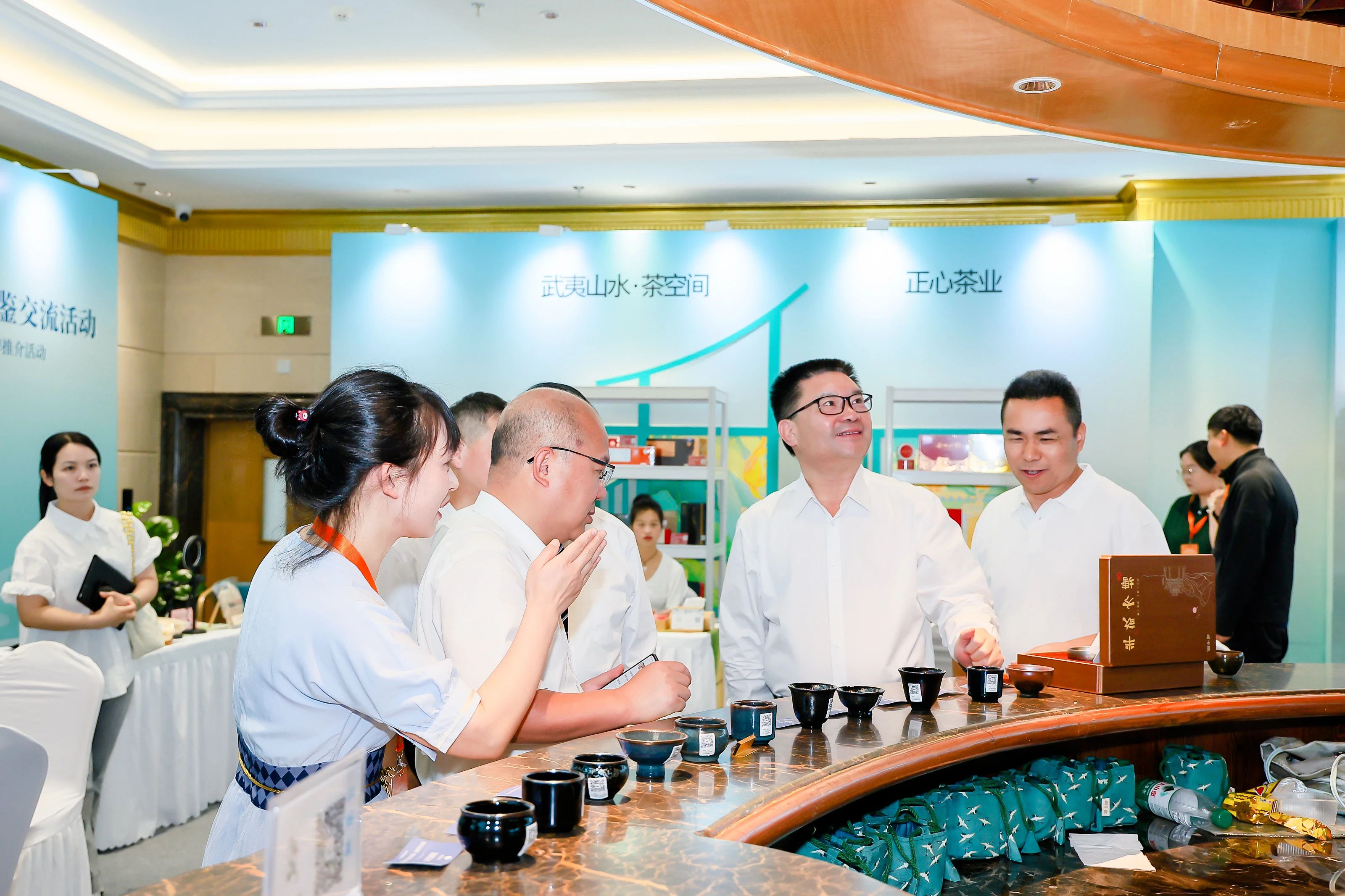 活動(dòng)現(xiàn)場(chǎng)茶葉品鑒交流區(qū)熱鬧非凡,武夷巖茶、紅茶、白茶等南平市各類好茶散發(fā)著獨(dú)特的香氣,吸引著嘉賓們駐足品鑒,感受每一款茶背后的故事與韻味。在眾多展區(qū)中,“武夷山水?茶空間” 展區(qū)格外引人注目,展區(qū)全方位展示了包含茶、竹、水、器、茶點(diǎn)、非遺文化等在內(nèi)的多元化產(chǎn)品,無(wú)論是香氣悠長(zhǎng)的茶香,還是精美絕倫的茶具,亦或是別具風(fēng)味的茶點(diǎn)等等,都讓人流連忘返,對(duì)武夷茶文化有了更為深刻的認(rèn)識(shí)與喜愛(ài)。