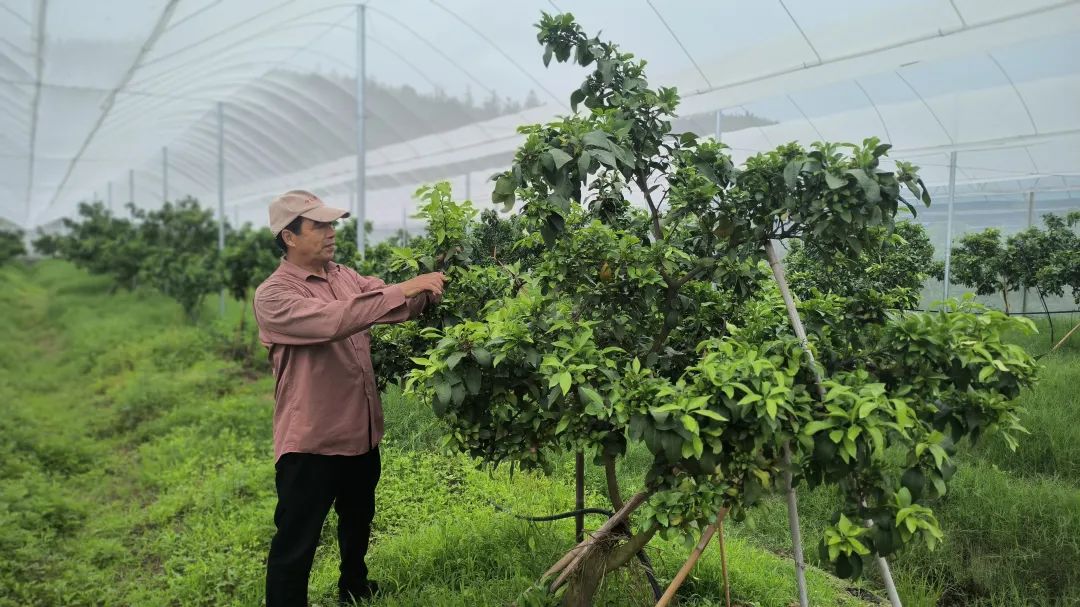 2023年12月,由于在科技助農(nóng)上的優(yōu)秀表現(xiàn),肖森官被選認為閩北首屆鄉(xiāng)土科特派,他搞科研的干勁更足了。2023年底,柑橘黃龍病大面積暴發(fā),他仔細查找病因,并向縣植保站求助,及時開展柑橘黃龍病化學防治和物理防治,遏制了病害蔓延。2025年初,他發(fā)現(xiàn)廣西、江西兩省均通過搭蓋防蟲網(wǎng)的方法種植柑橘,對防治柑橘黃龍病很有效,于是在合作社柑橘種植基地里設立果園功能性觸殺防蟲網(wǎng)技術實驗地,目前成效初顯,實驗地未發(fā)現(xiàn)有果樹因黃龍病死亡。