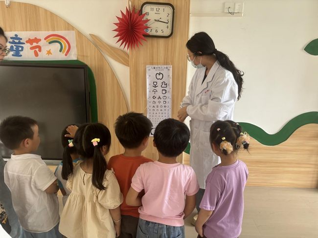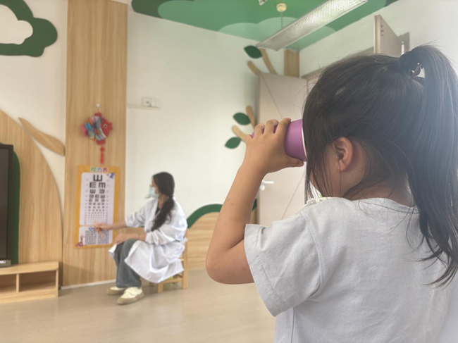 除了健康素養(yǎng)知識(shí)的科普,醫(yī)護(hù)人員還通過專業(yè)設(shè)備為孩子們進(jìn)行了細(xì)致的視力篩查,記錄視力發(fā)育情況,對(duì)個(gè)別視力異常的幼兒提出科學(xué)干預(yù)建議。并且耐心示范、指導(dǎo)小朋友們學(xué)習(xí)標(biāo)準(zhǔn)的眼保健操動(dòng)作,手把手糾正錯(cuò)誤姿勢(shì),讓孩子們?cè)谳p松愉快的氛圍中掌握護(hù)眼技能。