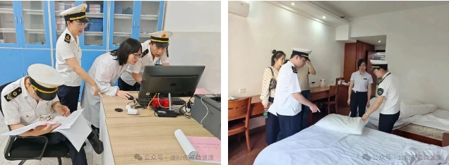 衛(wèi)生執(zhí)法人員聚焦高考健康安全核心環(huán)節(jié),重點(diǎn)檢查了各考點(diǎn)學(xué)校的傳染病防控制度落實(shí)情況、學(xué)校環(huán)境消殺、考室和學(xué)生宿舍通風(fēng)消毒、空調(diào)清洗消毒、二次供水設(shè)施清洗消毒和水質(zhì)檢測以及防暑降溫等應(yīng)急物資儲備等情況,檢查了南平市教師進(jìn)修學(xué)院考生住宿場所的公共用品用具和空調(diào)通風(fēng)系統(tǒng)的清洗消毒、飲用水衛(wèi)生安全、從業(yè)人員健康管理等情況。經(jīng)查,各考點(diǎn)傳染病防控制度健全、流程清晰、應(yīng)急處置機(jī)制完備;考場和宿舍環(huán)境清潔通風(fēng)消毒措施、空調(diào)清洗消毒均按要求落實(shí)。