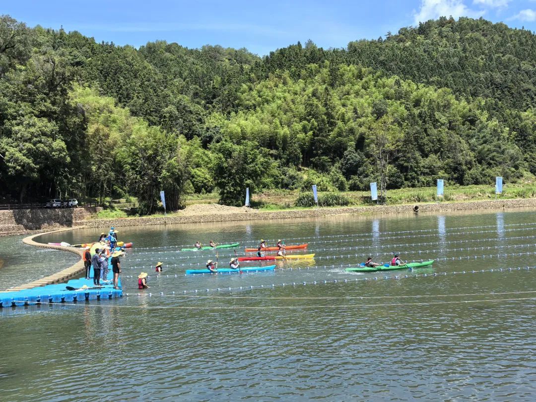 水上田間運動會上,有皮劃艇、水上槳板等專業(yè)賽道項目,考驗參與者的力量與技巧;也有不少趣味挑戰(zhàn)項目,“輕功水上漂”浮板挑戰(zhàn)驚險、刺激,田間摸泥鰍、抓鴨子活動充滿童真與歡樂;選手們還可以在杜潭驛站旁的“落花流水道”,體驗愜意漂流,盡情釋放夏日活力。