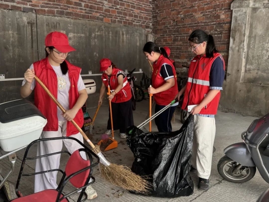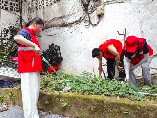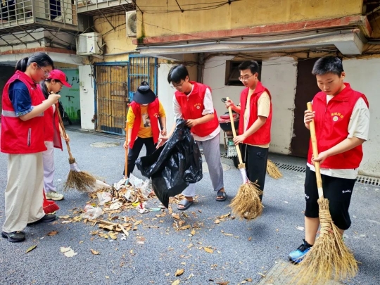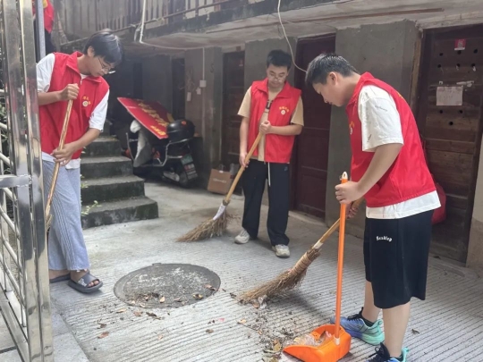 志愿者們分工協(xié)作,干勁十足,清掃院子、路面落葉積塵、拔除雜草、整理亂堆雜物,用行動(dòng)傳遞文明力量。