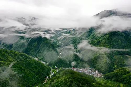 武夷山國(guó)家公園腹地的原始森林與村落(無(wú)人機(jī)照片)。