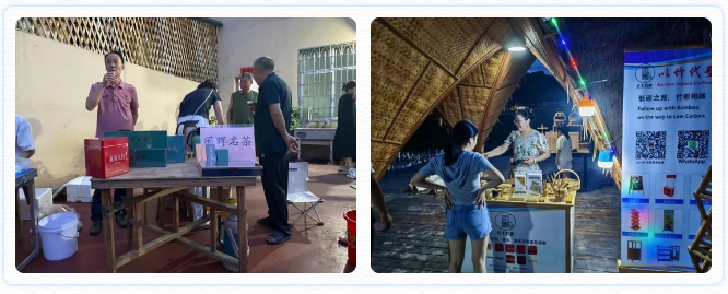 閩輝茶葉、竹名堂等本地茶、竹企業(yè)到現(xiàn)場支攤售賣。