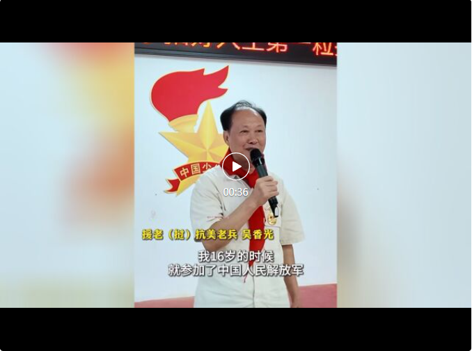 抗美援老老兵吳香光囑托少先隊(duì)員們,歲月靜好,來(lái)之不易,隊(duì)員們要追憶歷史、緬懷先烈、努力學(xué)習(xí),為建設(shè)富強(qiáng)的新中國(guó)而奮斗。