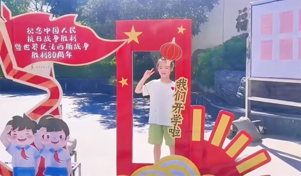 閩北日?qǐng)?bào)訊(記者陳冰倩 文/攝)“來(lái),寶貝站好,我們拍個(gè)照!”8月30日上午,南平市實(shí)驗(yàn)小學(xué)(武夷校區(qū))校門(mén)口“紀(jì)念中國(guó)人民抗日戰(zhàn)爭(zhēng)暨世界反法西斯戰(zhàn)爭(zhēng)勝利80周年”主題打卡點(diǎn)前人氣十足。即將邁入一年級(jí)的新生們,在鏡頭前留下了成為“小學(xué)生”的第一個(gè)珍貴瞬間。