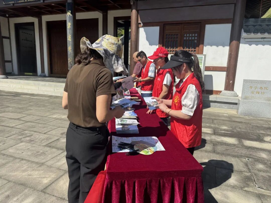 活動當天,志愿者身著統(tǒng)一服裝,在考亭書院為往來游客提供貼心服務。他們耐心解答游客關于景點分布、游覽路線、特色展品的疑問,結(jié)合書院歷史文化脈絡為游客規(guī)劃個性化行程;更主動遞上《文明旅游倡議書》,用溫和的語氣倡導“安靜參觀、不觸文物、不刻亂畫、愛護設施”,以實際行動傳遞文明旅游理念。