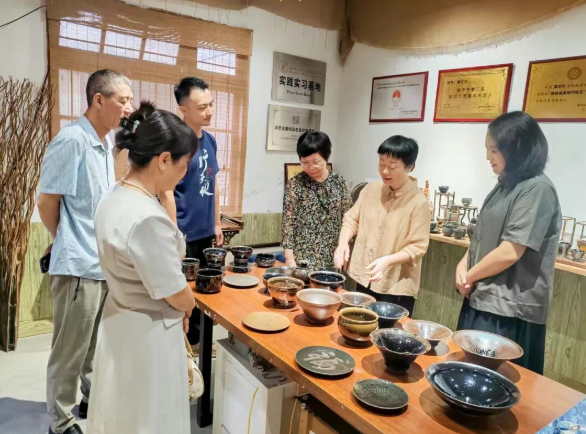 在南平市和遠(yuǎn)建盞文化有限公司,黃愛華一行參觀了柴燒龍窯、建盞工作室,聽取了公司創(chuàng)始人及女主播黃玥夫妻二人的創(chuàng)業(yè)經(jīng)歷、打造線上建盞工坊的自產(chǎn)自銷模式等方面的介紹。在武夷花花世界,參觀了建盞文化長(zhǎng)廊并與當(dāng)代“三大曜變”燒制技藝的創(chuàng)始人周永金大師就建盞產(chǎn)業(yè)的發(fā)展現(xiàn)狀、技藝傳承、品牌建設(shè)、市場(chǎng)銷售等情況進(jìn)行了交流。在武夷山八馬茶業(yè)公司、鄉(xiāng)愁農(nóng)業(yè)生態(tài)產(chǎn)業(yè)園,深入了解了企業(yè)生產(chǎn)、女職工權(quán)益保障、產(chǎn)業(yè)工人隊(duì)伍建設(shè)等工作開展情況。
