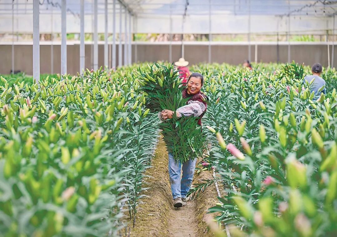 百合花,花朵碩大,花色鮮艷美麗,是世界名貴花卉之一,也是南平市的市花,其在延平區(qū)的種植歷史可追溯至20世紀(jì)80年代。從埋下第一粒人工種球開始到大面積推廣種植,延平逐漸成為全國(guó)百合花鮮切花第三大主產(chǎn)區(qū)。從打破種球進(jìn)口依賴,百合種源自繁突破1000萬粒實(shí)現(xiàn)國(guó)產(chǎn)化,到主動(dòng)牽手大院大所進(jìn)行科研攻關(guān);從推動(dòng)國(guó)內(nèi)三大百合花基地互動(dòng)互補(bǔ),到組建國(guó)企,開發(fā)高附加值產(chǎn)品;百合花產(chǎn)業(yè)在種源端、種植端、市場(chǎng)端不斷深耕細(xì)作,主動(dòng)延鏈補(bǔ)鏈強(qiáng)鏈,百合鮮切花種植面積達(dá)8500畝,暢銷24個(gè)省市并出口新加坡,全產(chǎn)業(yè)鏈年產(chǎn)值達(dá)6.3億元,百合花不僅成為了南平市的一張亮麗名片,更成長(zhǎng)為促進(jìn)共富的“幸?;ā薄?/p>