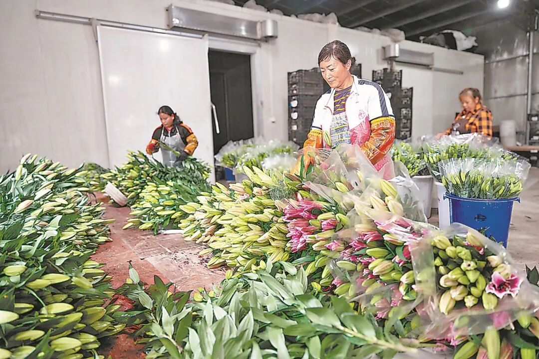 截至目前,全區(qū)百合花種植面積達(dá)8500畝,全產(chǎn)業(yè)鏈年產(chǎn)值達(dá)6.3億元。百合花成了名副其實(shí)的“致富花”。