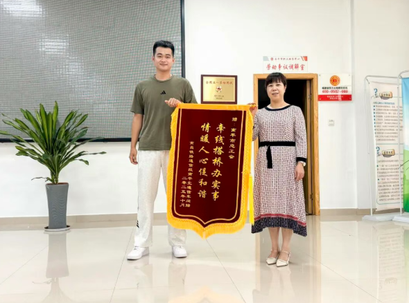工會(huì)牽線結(jié)良緣 職工脫單送錦旗