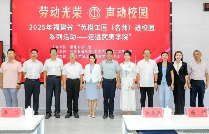 為深入學習貫徹習近平總書記在全國勞動模范和先進工作者表彰大會上的重要講話精神,弘揚勞模精神、勞動精神、工匠精神與教育家精神,發(fā)揮勞模名師的示范引領作用,近日,由福建省總工會主辦,福建教育學院、南平市總工會、武夷學院承辦,武夷學院工會、武夷學院教務處協(xié)辦的“勞動光榮·聲動校園——2025年福建省‘勞模工匠(名師)進校園’系列活動”在武夷學院舉行。福建省教科文衛(wèi)體工會工作委員會主任郭立新,福建省教科文衛(wèi)體工委副主任陽先輝,福建省教科文衛(wèi)體工委二級調(diào)研員左修坤,福建教育學院黨委委員、副院長張志剛,武夷學院黨委副書記、工會主席梁方出席活動。
