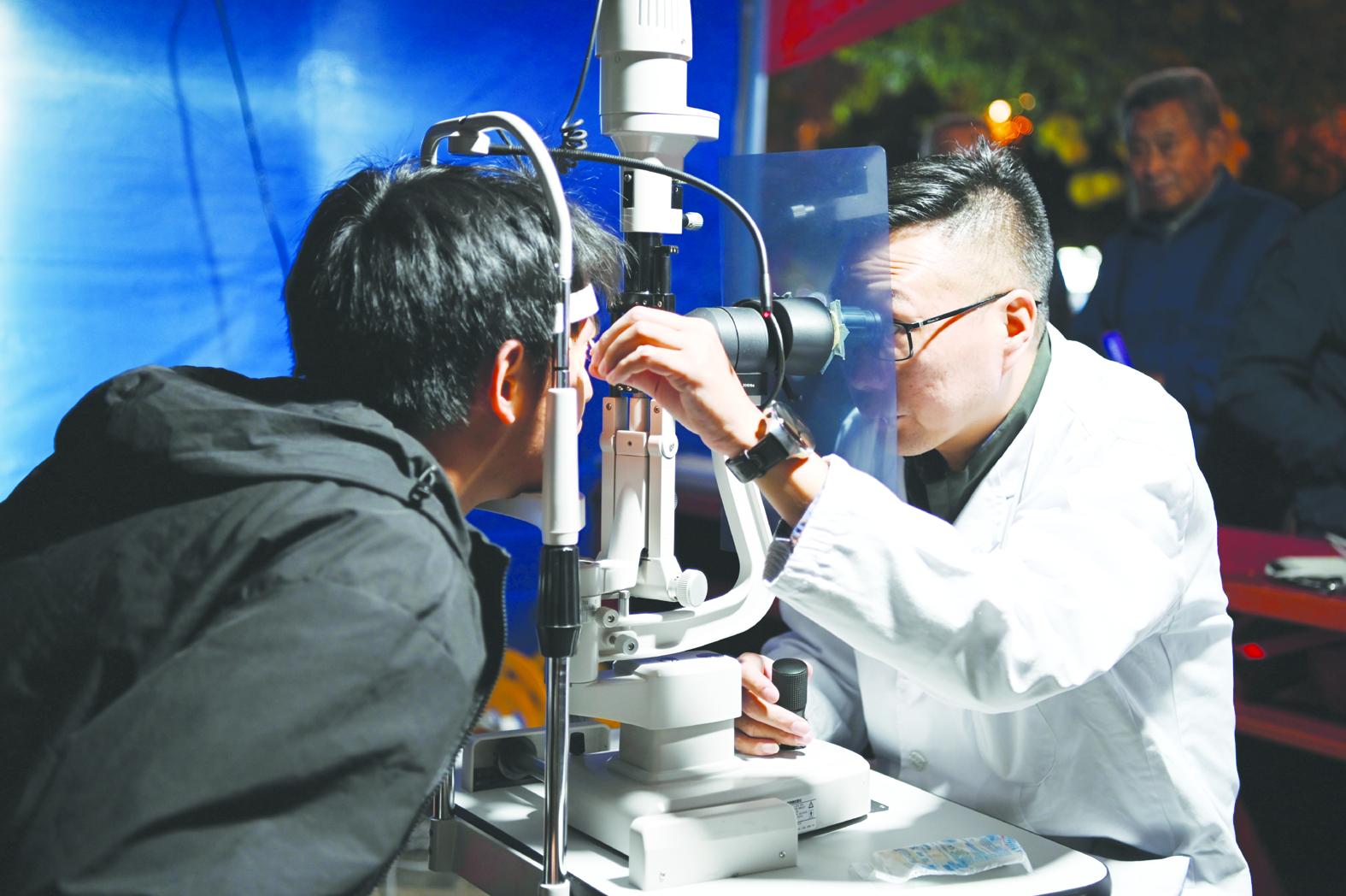 義診攤位上,為市民檢查眼部健康狀況。(張俁辰 攝)