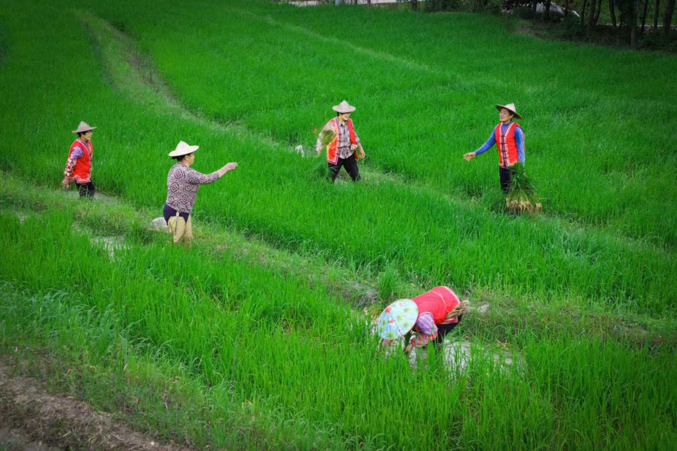 村民在梯田插秧勞作。劉可升/攝