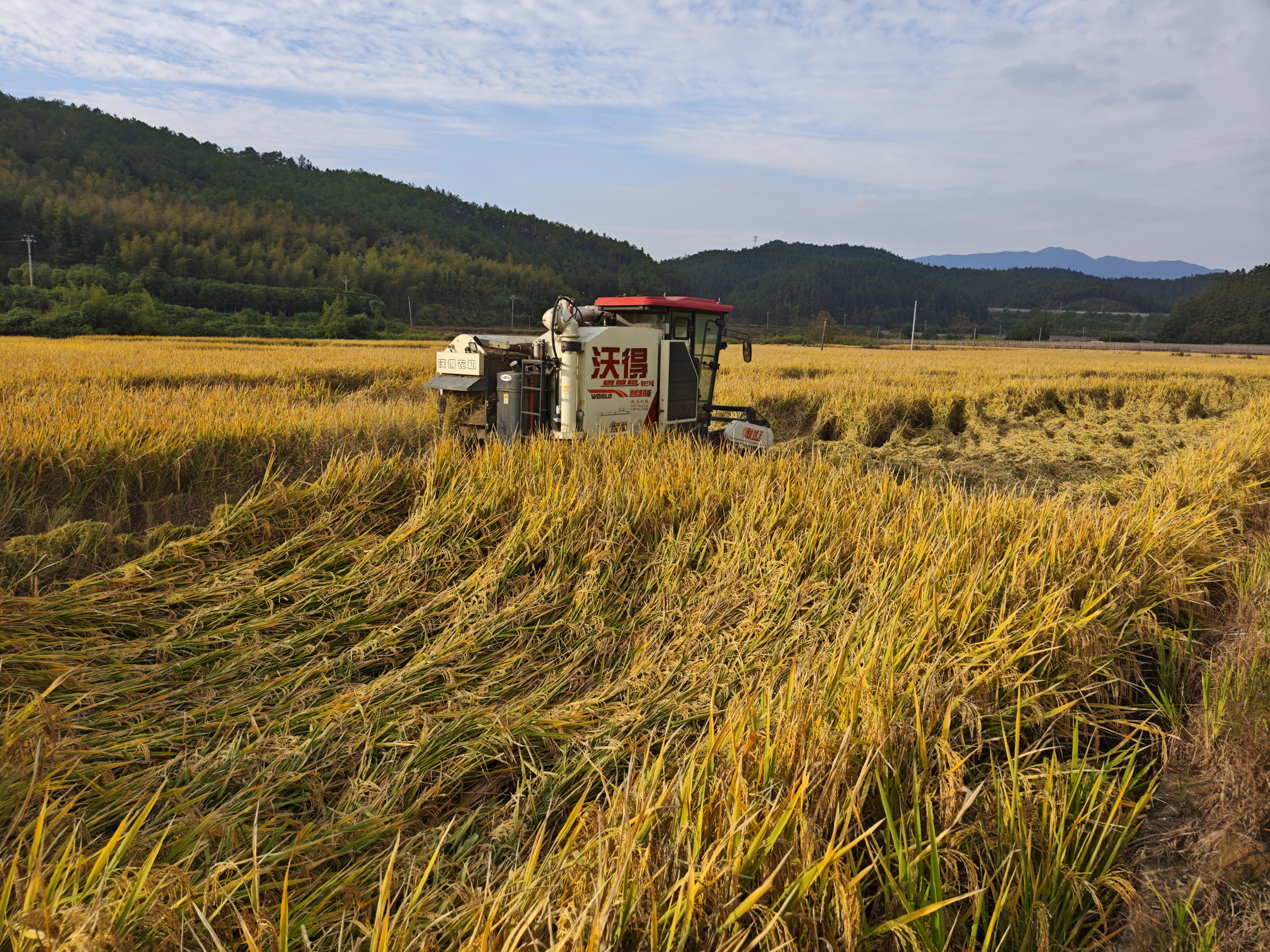 連片稻田里傳來的是聯(lián)合收割機的陣陣轟鳴,幾臺收割機往來穿梭收割,金黃的稻谷源源不斷涌入糧箱;農(nóng)戶們緊隨其后,裝袋轉(zhuǎn)運,忙碌的身影在稻浪中穿梭,臉上洋溢著掩飾不住的喜悅?!敖衲晏鞖饨o力,光照充足,更關鍵的是鎮(zhèn)農(nóng)技站的工作人員全程跟蹤指導,從選種、育秧到田間管理、蟲害防治,每一步都教得細致,畝產(chǎn)比去年提高不少!”種植戶高大哥手捧金燦燦的稻穗,笑著說道。