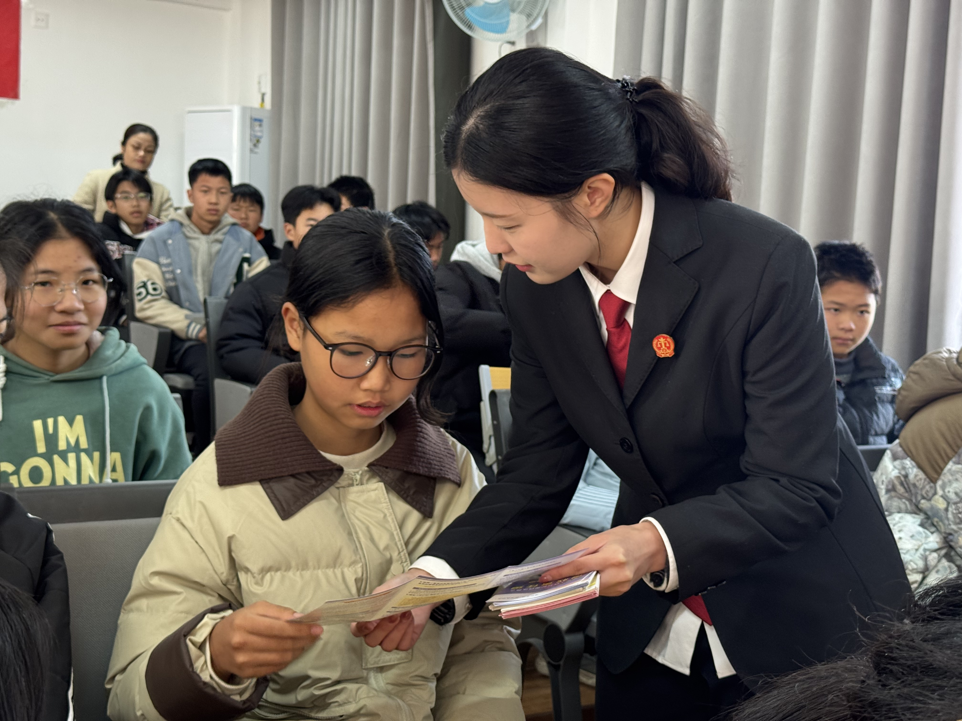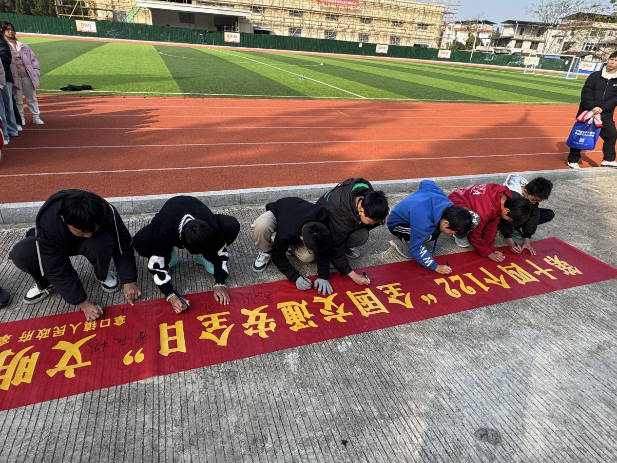 在宣講環(huán)節(jié)中,工作人員圍繞預(yù)防未成年人違法犯罪、校園欺凌、電信網(wǎng)絡(luò)詐騙、禁毒防艾、矛盾糾紛化解等重點內(nèi)容,結(jié)合真實案例以案釋法,詳細(xì)解讀相關(guān)法律法規(guī),并向師生發(fā)放宣傳資料與文創(chuàng)產(chǎn)品。拿口鎮(zhèn)道安辦工作人員針對學(xué)生上下學(xué)出行特點,結(jié)合典型交通事故案例,細(xì)致講解安全過馬路、規(guī)范乘車、文明騎車等注意事項,倡導(dǎo)學(xué)生自覺遵守交通法規(guī),養(yǎng)成良好出行習(xí)慣。活動現(xiàn)場,學(xué)生們紛紛在主題橫幅上簽下姓名,用無聲的誓言表達對交通安全的美好期待和文明出行的堅定決心。
