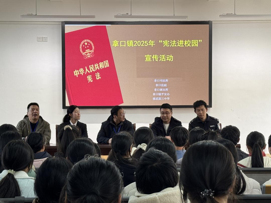 大武夷新聞網(wǎng)訊 12月2日上午,拿口鎮(zhèn)人民政府聯(lián)合拿口公安派出所、拿口法庭、拿口司法所、拿口綜治中心多部門走進邵武第三中學(xué),與學(xué)校共同舉辦“12·2”全國交通安全日暨“12·4”憲法宣傳日主題教育活動?;顒右浴胺ㄖ?安全”深度融合為核心,通過多元化宣傳形式,讓法治精神與安全理念浸潤師生心田。