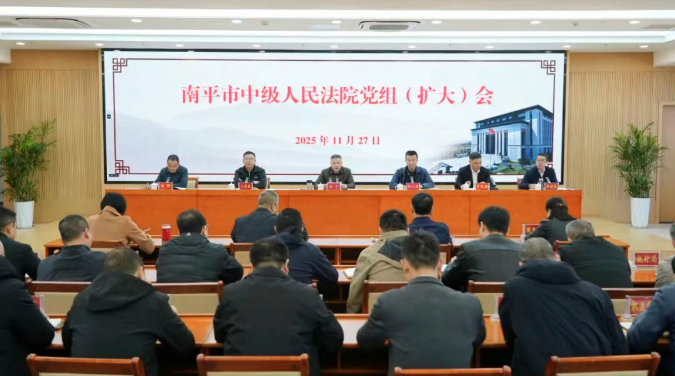 11月27日,南平市中級人民法院召開黨組(擴大)會,傳達學習省委十一屆九次全會、市委六屆十次全會和省法院黨組會精神,研究初步貫徹意見。南平中院黨組書記、院長池力主持會議并講話。