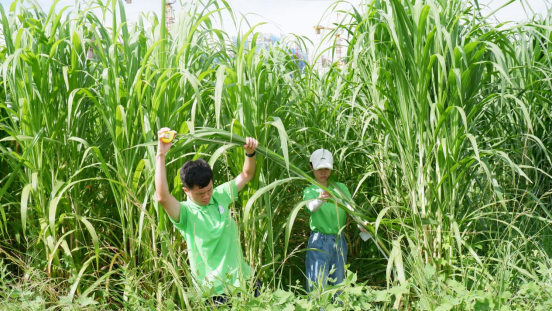 實踐隊在順昌縣金富羊業(yè)菌草養(yǎng)羊基地考察運用菌草飼料模式,在巨菌草套種農(nóng)作物示范點,學(xué)習(xí)巨菌草套種的相關(guān)知識并測定巨菌草農(nóng)藝性狀指標(biāo)。