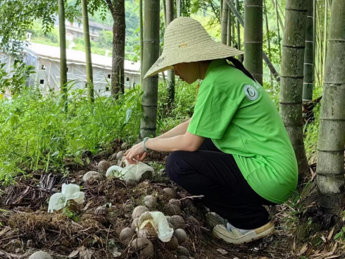 實踐隊在鄭坊鎮(zhèn)興源村的菌草新型產(chǎn)業(yè)跨村聯(lián)建示范基地與巨菌草栽培食用菌實驗基地,學(xué)習(xí)菌草栽培竹蓀工藝及管理方法,以及跨村聯(lián)建模式,并親手采摘成熟的竹蓀。
