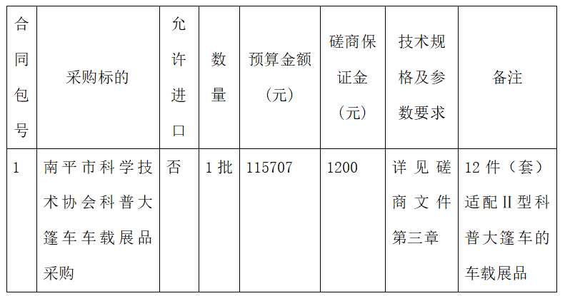 磋商項(xiàng)目名稱:南平市科學(xué)技術(shù)協(xié)會(huì)科普大篷車車載展品采購