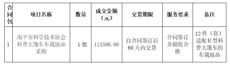 二、項(xiàng)目名稱:南平市科學(xué)技術(shù)協(xié)會(huì)科普大篷車車載展品采購(gòu)