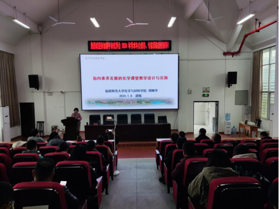福建師范大學(xué)化學(xué)與材料學(xué)院教授、化學(xué)系主任鄭柳萍作了題為《指向素養(yǎng)發(fā)展的化學(xué)課堂教學(xué)設(shè)計(jì)與實(shí)施》專題講座,從“把握時(shí)代要求,理解教學(xué)變化”和“優(yōu)化教學(xué)設(shè)計(jì),促進(jìn)素養(yǎng)發(fā)展”兩個(gè)方面闡述了如何開(kāi)展素養(yǎng)為本的中學(xué)化學(xué)課堂教學(xué)的方法。
