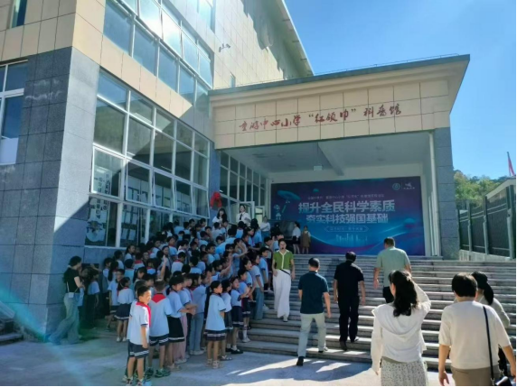 在“科普大篷車進(jìn)校園”活動展區(qū),科普志愿者的引導(dǎo)學(xué)生們操縱著按鈕、搖桿,體驗科普展品的魅力!