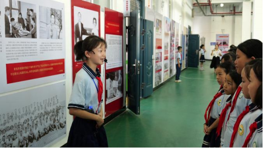 在“紅領(lǐng)巾”科普館的科學(xué)家精神展廳里,紅領(lǐng)巾講解員正聲情并茂地為正在參觀的學(xué)生們介紹老一輩科學(xué)家們的事跡。