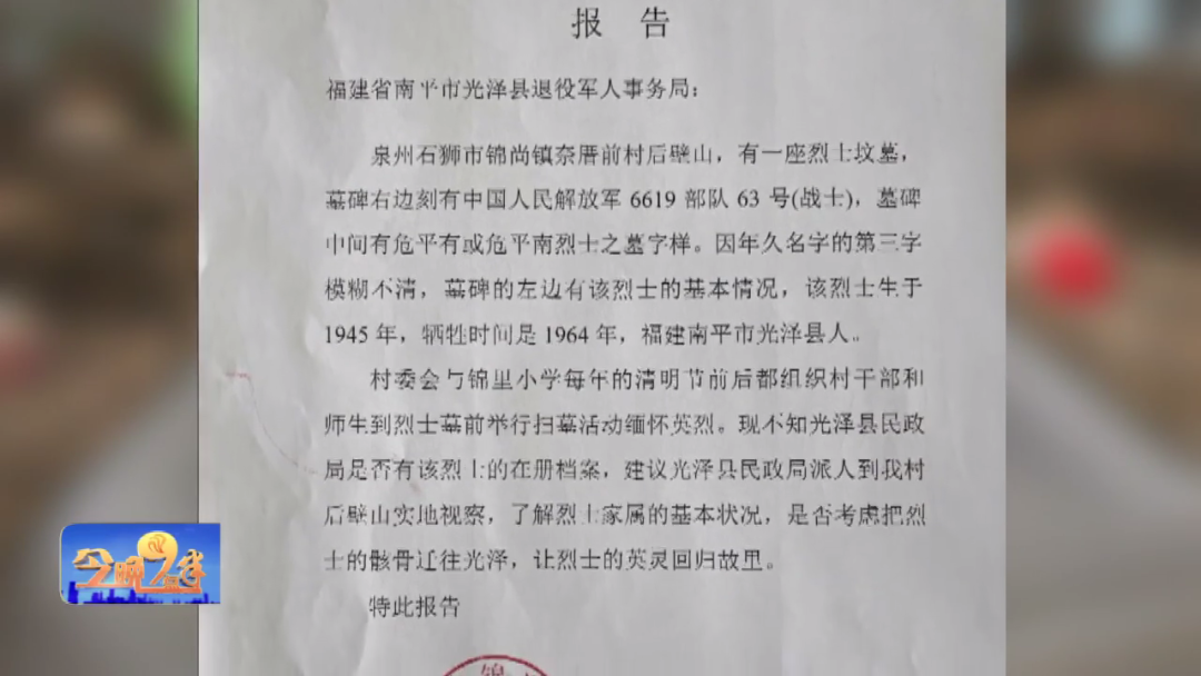 光澤縣:石獅光澤兩地為烈士尋親 危平有烈士的親屬已找到