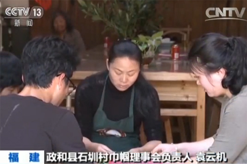 南平市政和縣石圳村巾幗理事會負責(zé)人袁云機說,他每次走到村里看到老人家,他心里很難受,讓我們快點做起來,這樣子的話能夠在外面打工的人能夠回來,在自己的家門口也可以做上生意,把這個村里留下的老人家小孩就可以照顧到。
