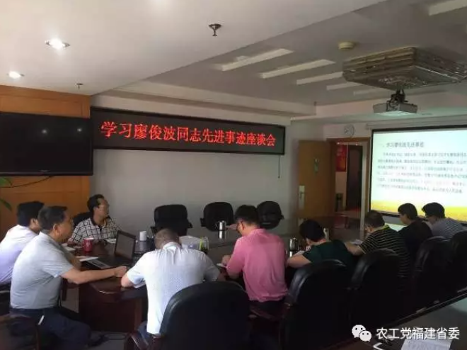 為響應(yīng)中共中央、中共福建省委向廖俊波同志學(xué)習(xí)的號召,農(nóng)工黨福建省委會機(jī)關(guān)已于7、8月間先后組織開展觀看《廖俊波》微電影、《時(shí)代楷模發(fā)布廳》廖俊波專題節(jié)目以及赴政和縣學(xué)習(xí)廖俊波先進(jìn)事跡等活動。為了進(jìn)一步把學(xué)習(xí)活動推向深入,2017年9月11日,省委會機(jī)關(guān)在同心樓11層會議室召開學(xué)習(xí)廖俊波先進(jìn)事跡座談會。農(nóng)工黨福建省委會專職副主委楊琳主持座談會并講話,機(jī)關(guān)全體干部參加座談會。