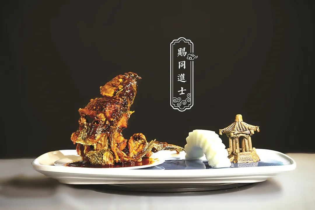 紹興十七年(1147),建州貢院主考官蔡茲閱卷后對(duì)人說:“吾取一后生,三策皆欲為朝廷措置大事,他日必非常人?!苯B熙十八年(1148)春,朱子入都科舉,中王佐榜第五甲第九十名,賜同進(jìn)士出身?!百n同進(jìn)士”這道菜取材鯉魚,糖醋精制,寓“魚躍龍門,海闊天空”之意。宋朝取士,三年一考,全國(guó)大比,中進(jìn)士者,萬(wàn)中選一,19歲的少年朱子一舉中第,足見高才。