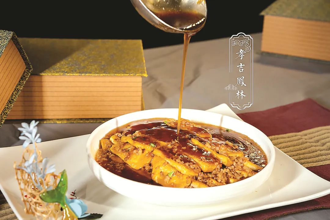 朱子孝敬尊長(zhǎng),幼時(shí)始誦《孝經(jīng)》,即書字其上“不若是,非人也”。長(zhǎng)大后,他孝順父母,常回政和縣鐵山鎮(zhèn)鳳林村祭祖,曾賦詩(shī)《十月朔旦懷先隴作》,發(fā)出追慕先祖的喟嘆:“持身慕前烈,銜訓(xùn)倘在斯?!薄靶⒓P林”這道菜的主料是豆腐,“豆腐”諧音“到?!保ⅰ靶腋淼健敝?。朱子在政和為祖守孝時(shí)食用豆腐,該習(xí)俗在政和至今傳承。紅燒豆腐,輔以肉末,咸鮮嫩滑,焦香微微。
