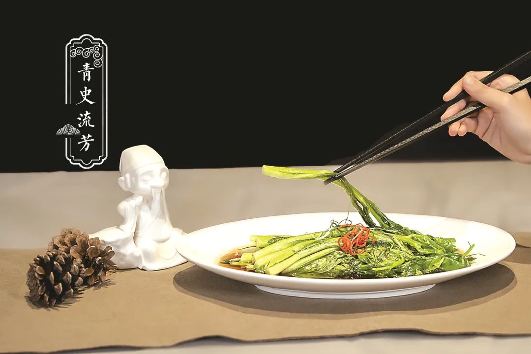 朱子學(xué)識(shí)淵博,著述授徒,其創(chuàng)建、修復(fù)、辦學(xué)、講學(xué)與題字過化的書院多達(dá)六十余所。他制定的《白鹿洞書院揭示》為后世書院學(xué)規(guī)之圭臬。其思想綜羅百代,是中華民族自孔子以來最重要的思想家,是對(duì)人類思想史作出巨大貢獻(xiàn)的東方文化圣哲。“青史流芳”這道菜是清炒時(shí)蔬。以青菜之“青”,寓意朱子“致廣大,盡精微,綜羅百代”,而青史流芳。