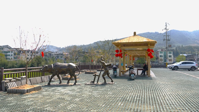 新建設的游客休憩亭融入了當?shù)剞r耕文化