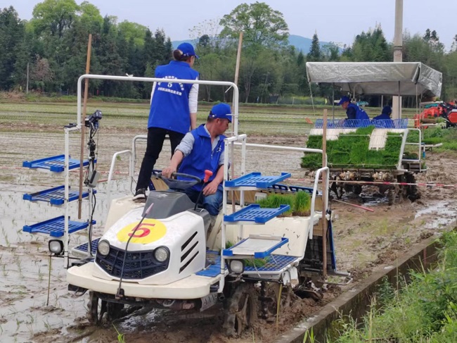 3日,邵武市舉辦第二屆早稻機插秧競賽,各鄉(xiāng)鎮(zhèn)均派出代表隊參賽。圖為機插比賽現(xiàn)場。 (林傳仁 朱振山 練曉娟 攝)