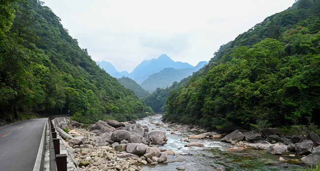 從武夷山市星村鎮(zhèn)紅星村出發(fā),沿著武夷山國家公園1號(hào)風(fēng)景道,穿行在碧水丹山之間。一路溯溪而上,滿目蒼翠,上有險(xiǎn)峰絕壁,下有激流淺灘,奇峰、異石,相映成趣,又好似形態(tài)各異的“飛禽走獸”,或打鬧嬉戲、或靜臥沉思,自然界的靈秀之美,盡顯其中。(張行健 文/攝)