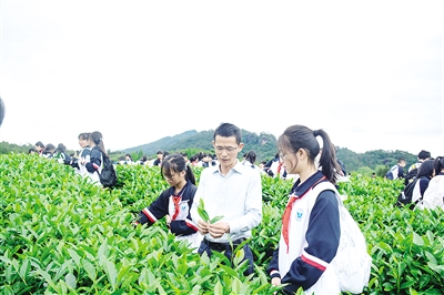 非遺傳承人指導(dǎo)學(xué)生采摘春茶(資料圖)