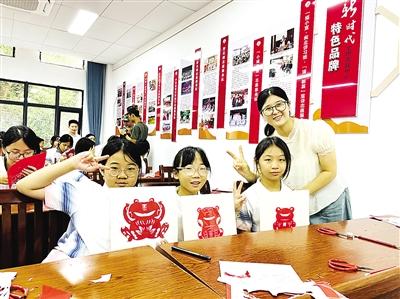 今年8月,“三浦并臻”中小學(xué)生美術(shù)夏令營(yíng)開展非遺研學(xué)之旅,圖為營(yíng)員們?cè)谄殖俏幕^體驗(yàn)國(guó)家級(jí)非遺浦城剪紙。 (黃菲 攝)