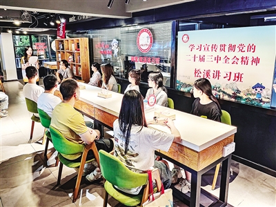 多樣的宣講形式、豐富的宣講場(chǎng)景,讓黨的好聲音化作社會(huì)最強(qiáng)音,直達(dá)群眾心間:在溪東鄉(xiāng),為了方便居民隨時(shí)隨地學(xué)習(xí),鄉(xiāng)里特別制作了講習(xí)微卡片,將黨的二十屆三中全會(huì)精神送到百姓家門口,方便村民隨時(shí)隨地學(xué)習(xí);在城區(qū)的咖啡屋,店家在屋內(nèi)一角設(shè)置閱讀區(qū),精心挑選并陳列了涉及政治、經(jīng)濟(jì)、文化等各類書籍,為顧客提供輕松愉快的學(xué)習(xí)氛圍。